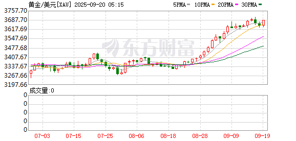 现货黄金突破3680美元/盎司,日内涨1%,续创历史新高。